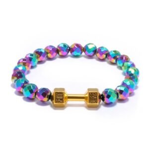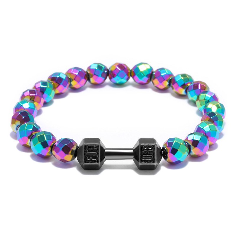 Alloy Accessories Dumbbell Barbell Fitness Bracelet 8mm Pure Natural Faceted Black Gallstone Yoga Bracelet Bracelet