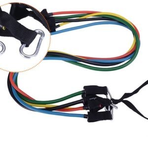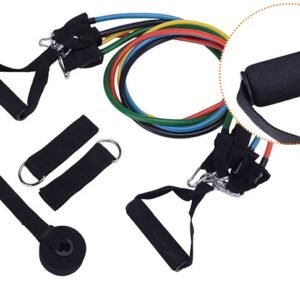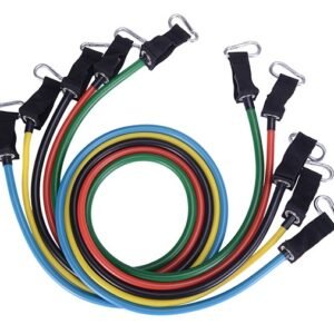 5 * elastic bands: black (30 lbs), blue (25 lbs), red (20 lbs), green (15 lbs), yellow (10 lbs)