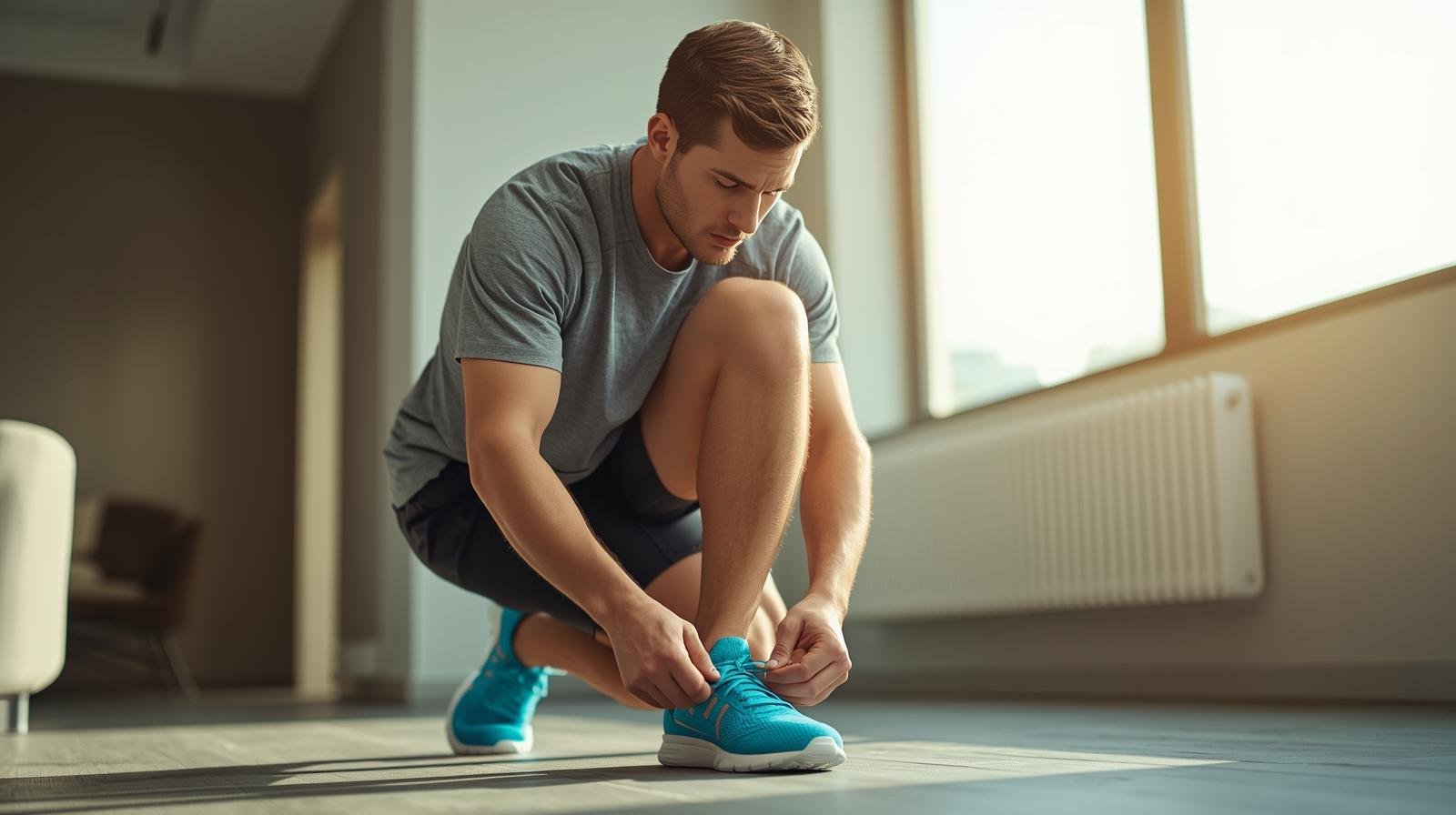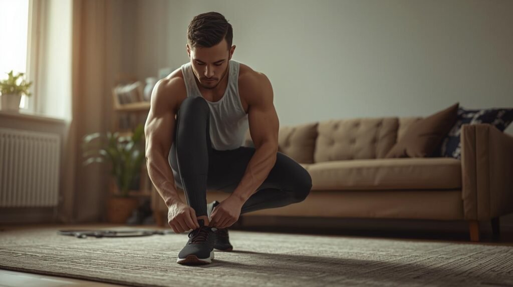 Are you ready to take charge of your fitness goals but struggling to stay motivated? Picture this: a determined young man tying his sneakers, fully focused on starting his home workout. This simple moment sets the tone for transformation — a commitment to becoming stronger, healthier, and more confident.